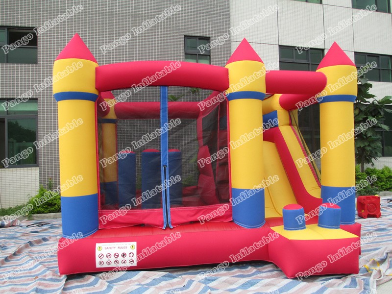 The inflatable castle with slide is a kind of inflatable amusement equipment with the appearance of castle. It is made of PVC net with environmental protection and soft double-net double-side clip net. In the case of sealing, the air blower is used to continuously supply air to maintain the product shape. The modelling of the inflatable castle with slide is designed according to the market popular cartoon, because its cuety, unique modelling is loved deeply by the child.